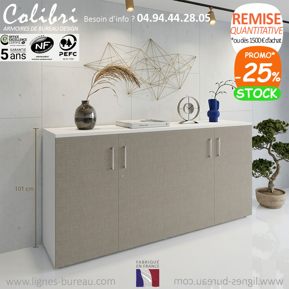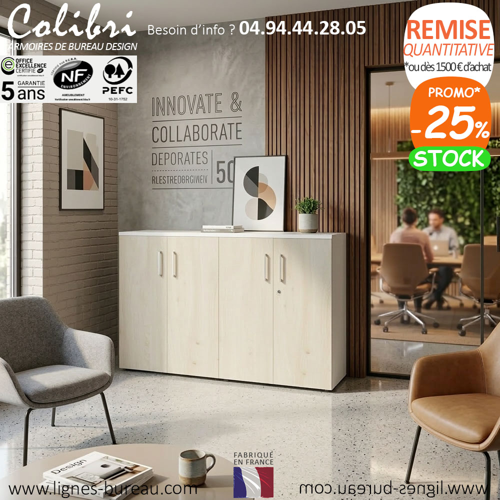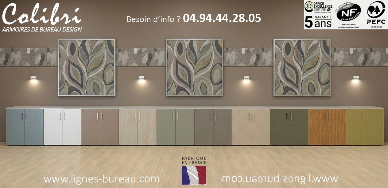 Cette armoire de la gamme colibri et personnalisable. Ce qui permet de l'harmoniser avec certains de nos bureaux administratifs et de nos mobiliers pour Open Space, tels que les gammes Océan, Latitude, Isos, Tom, Cosy…