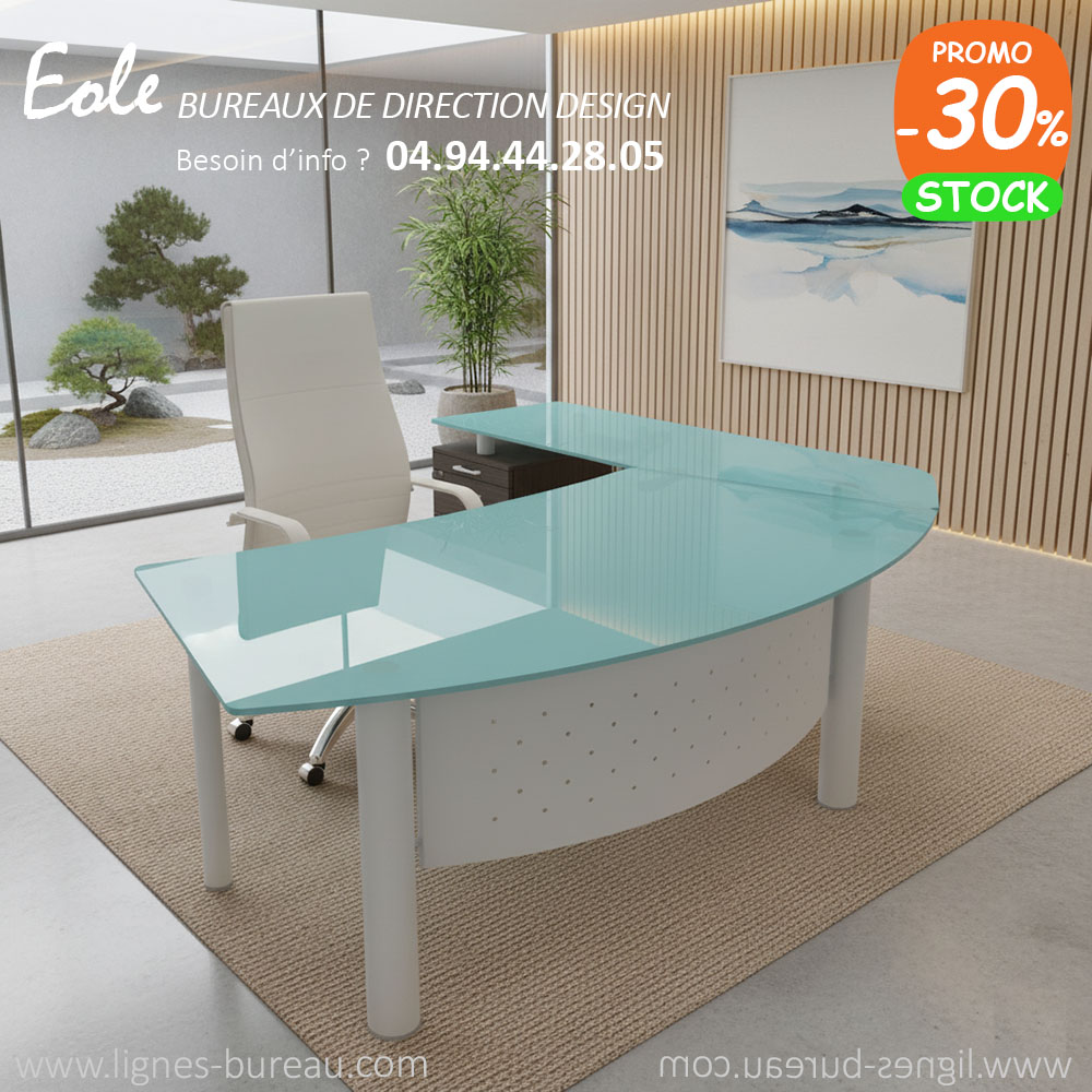 | Versions de bureau verre EOLE | L 217 cm – retour à GAUCHE – ….180S, L 217 cm – retour à DROITE – ….180D, L 237 cm – retour à GAUCHE – ….200S, L 237 cm – retour à DROITE – ….200D |