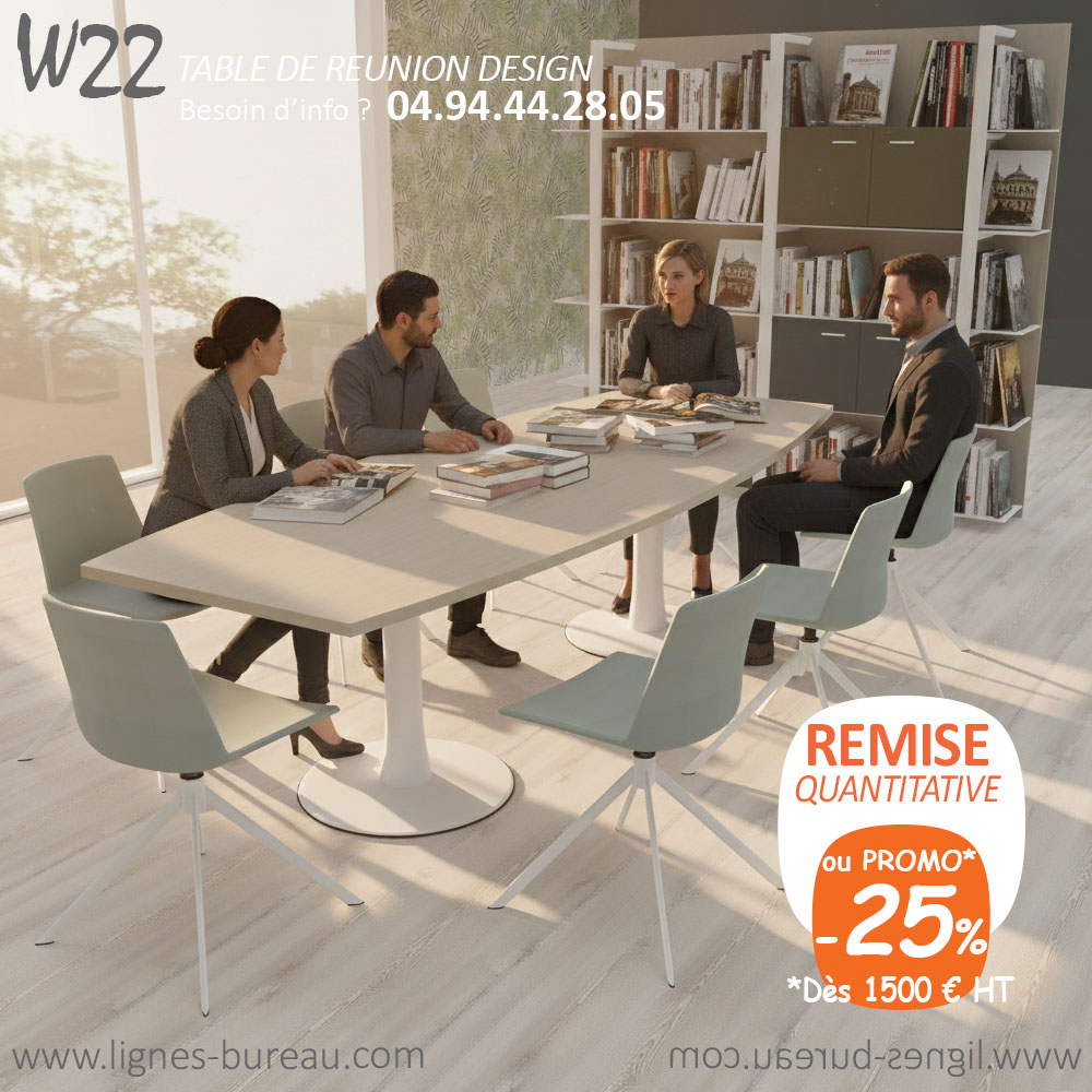 Ce mobilier est proposé à un prix économique. En achetant cette table maintenant, vous bénéficiez en plus d'une remise. Il y a aussi actuellement une promotion de 25% sur cette table de réunion Tonneau dans sa version chromée.